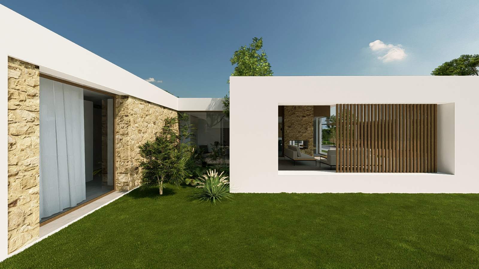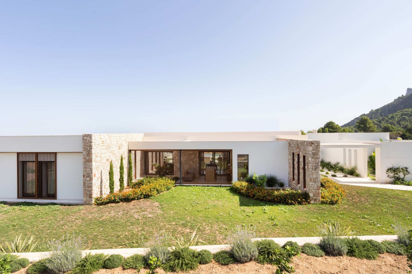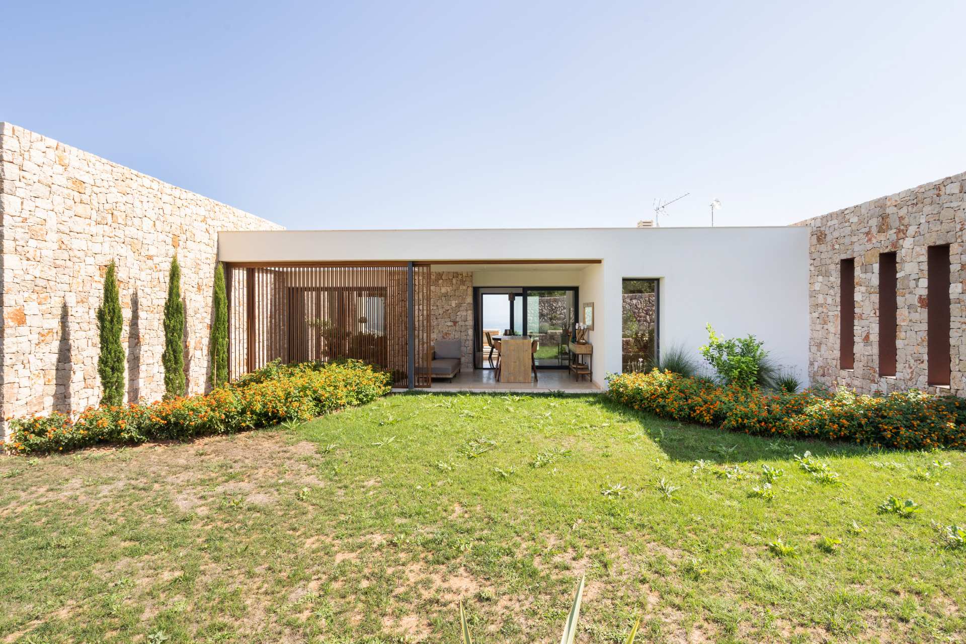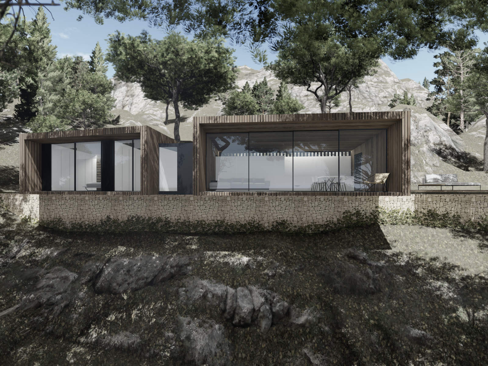 "Vivienda de una única planta inspirada en los diseños tradicionales como la cubierta a dos aguas y los muros de piedra pero reinterpretada con un lenguaje y un sistema constructivo de hoy en día."