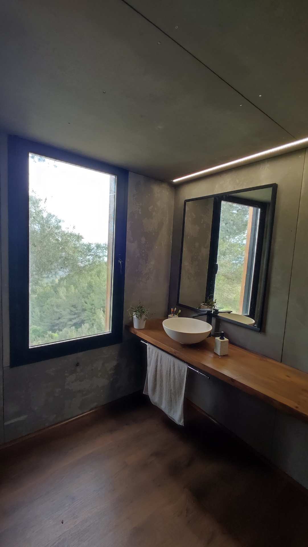 "Cabaña de madera escondida en medio del monte y ubicada en la ladera de una montaña con unas vistas espectaculares a la marjal en la que el objetivo de pasar lo más desapercibidos posible estuvo presente desde la idea inicial."