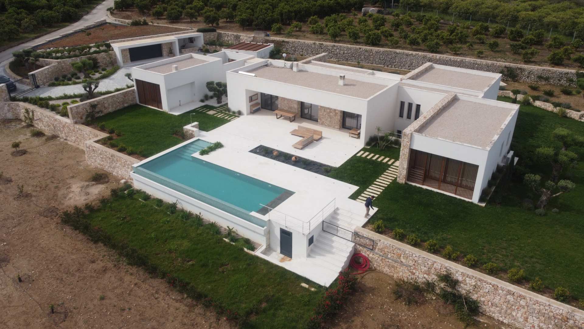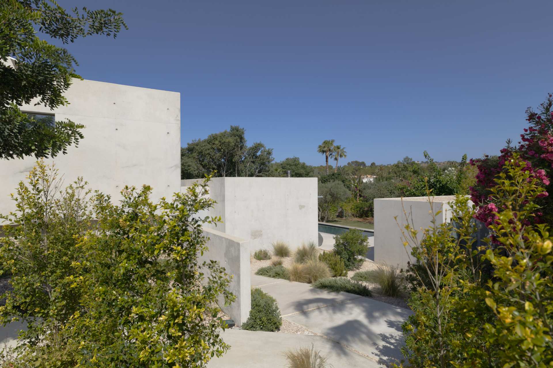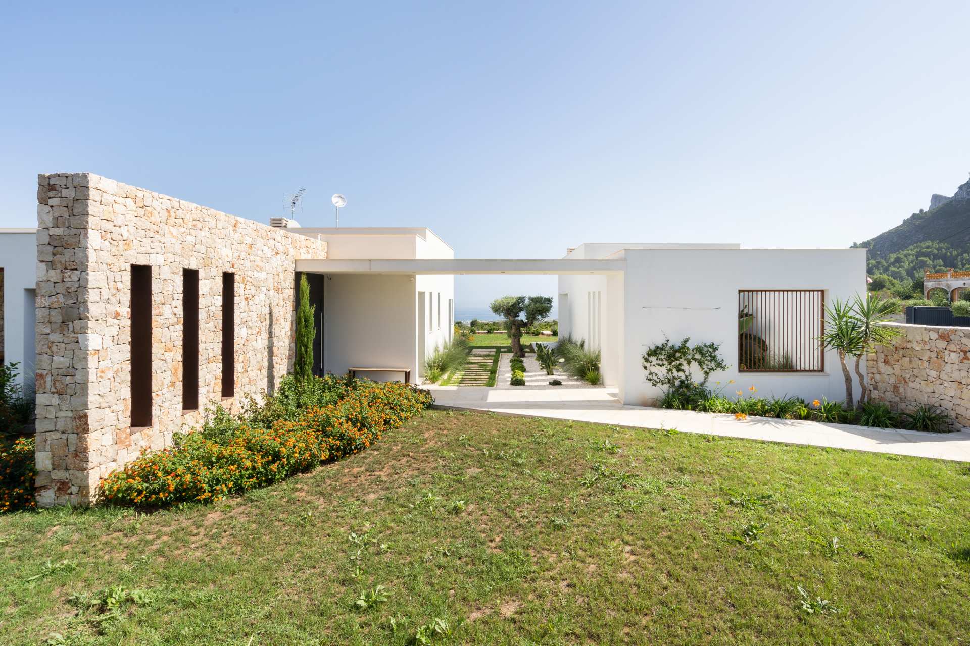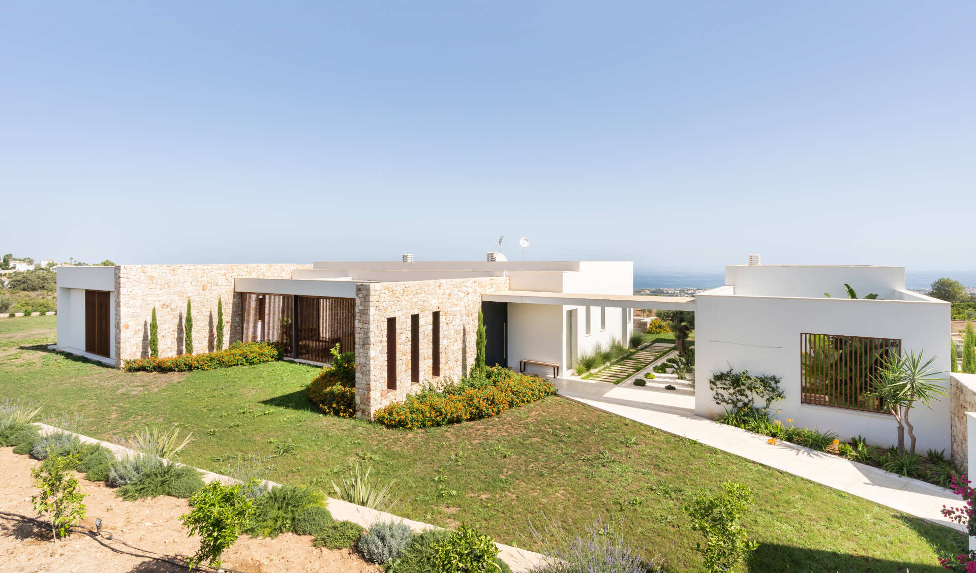 "Vivienda rural inspirada en el concepto de isla en medio de una extensa zona de naranjos y de huerta. Se pretendía potenciar las visuales al mar mediante cajas y planos de piedra."