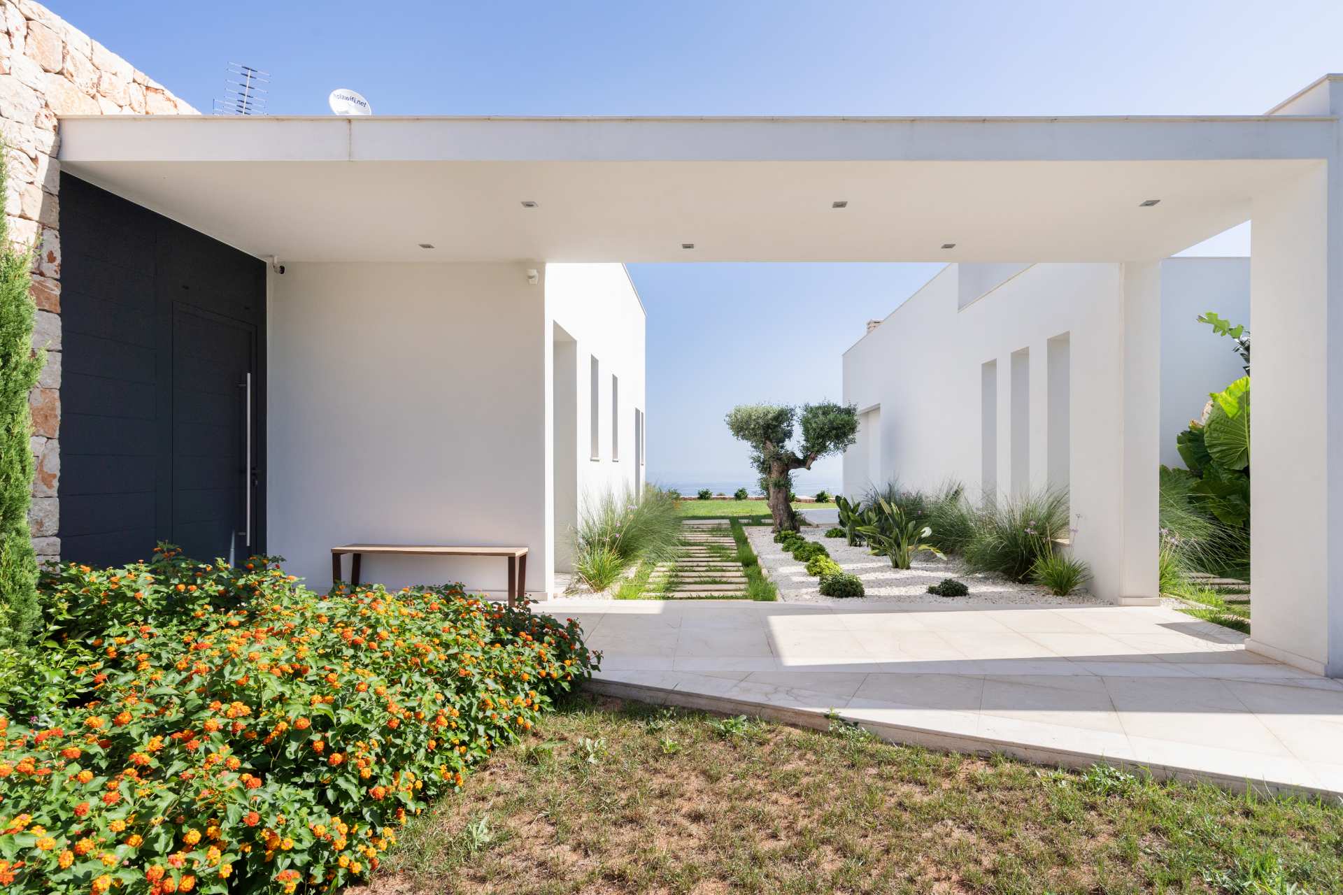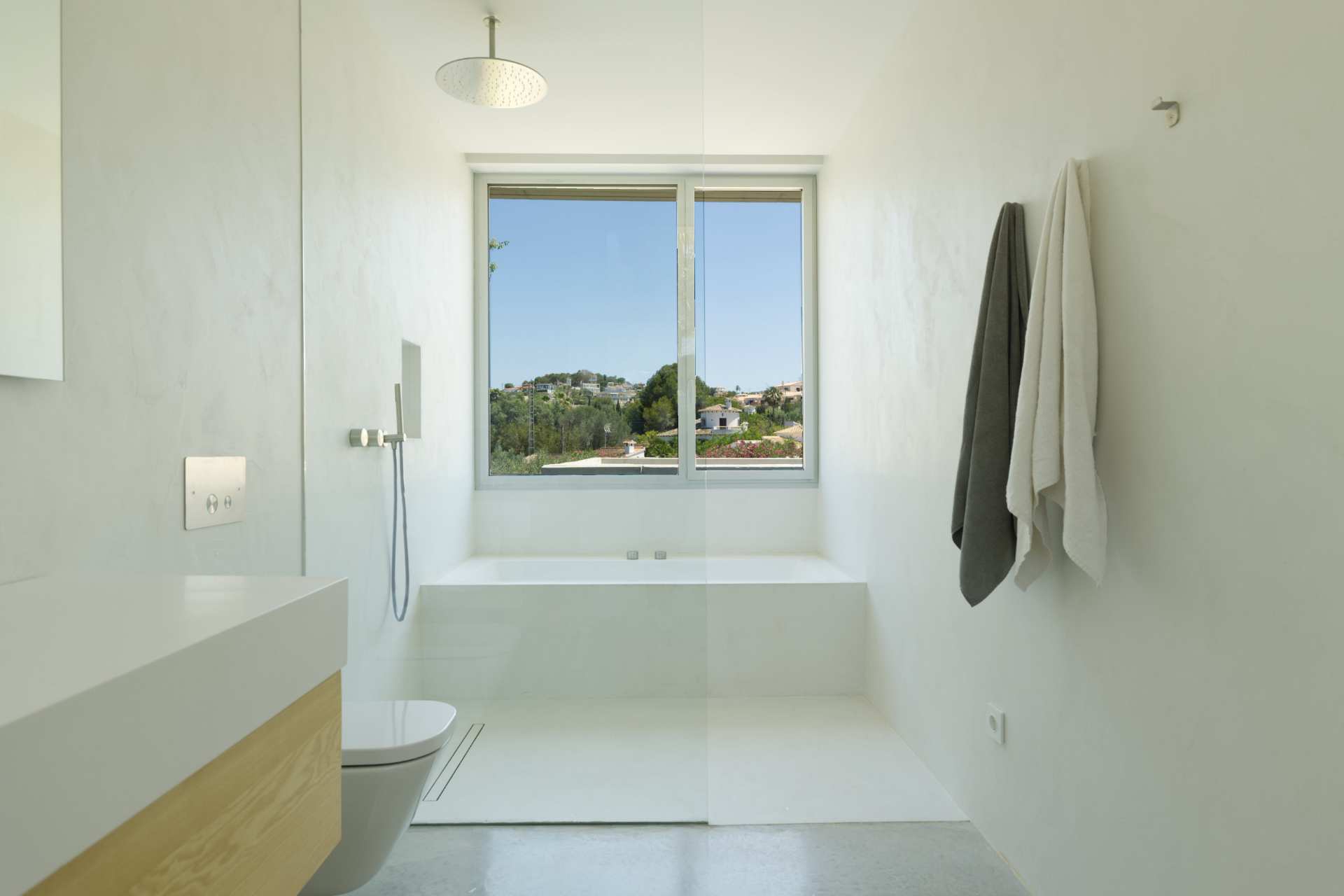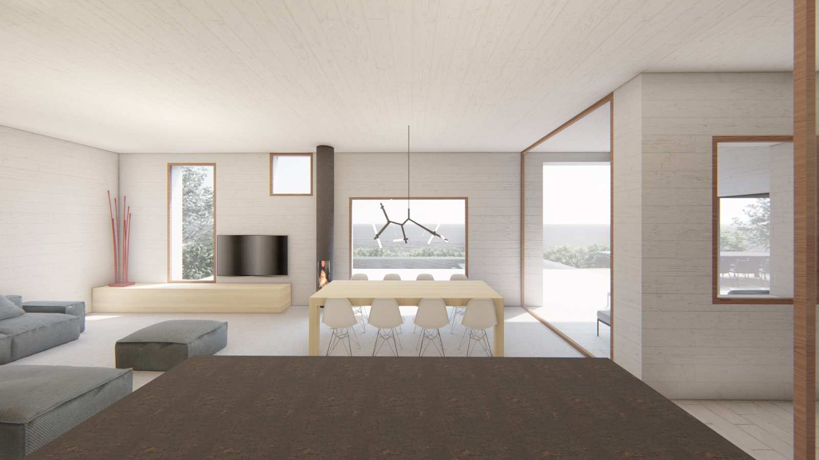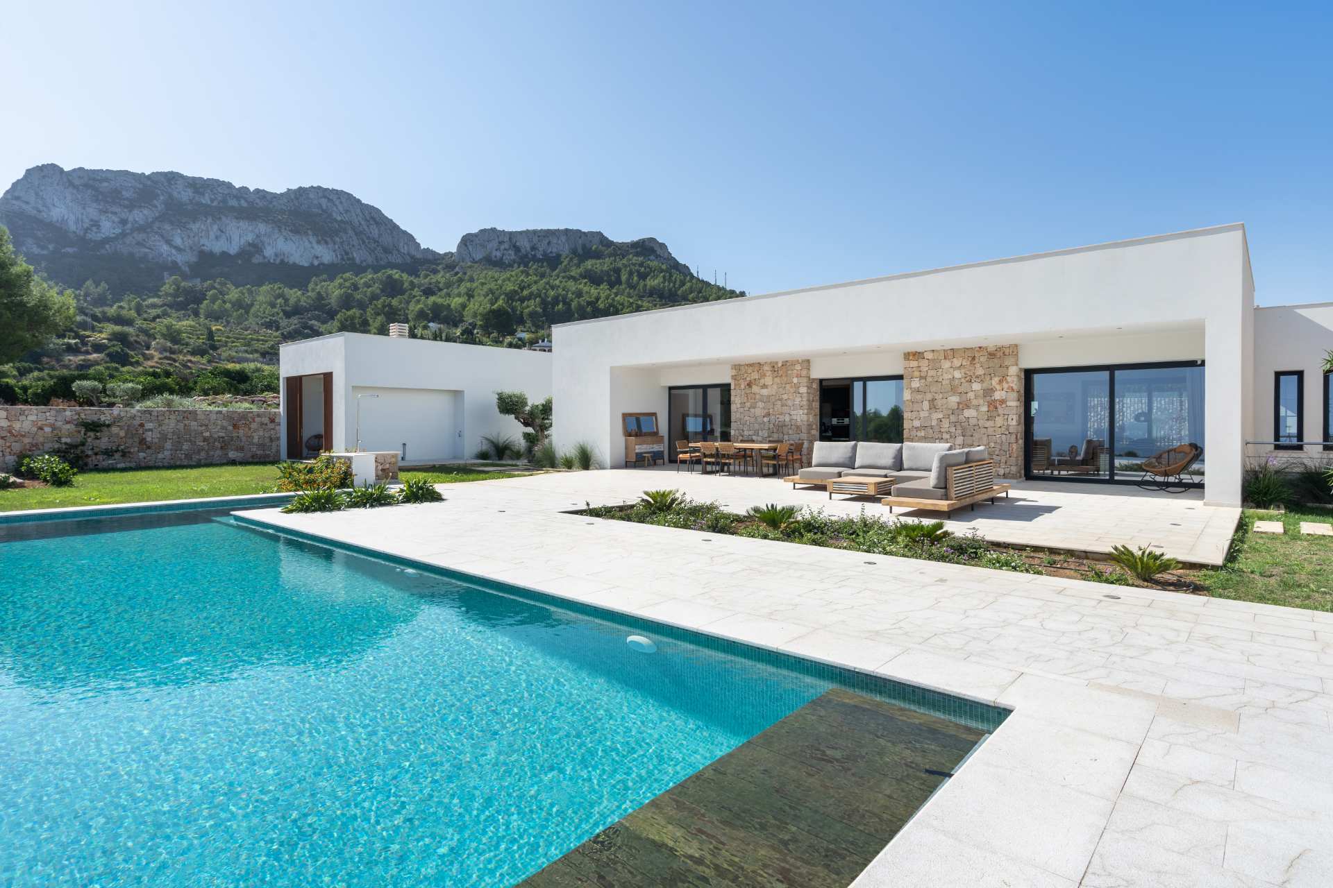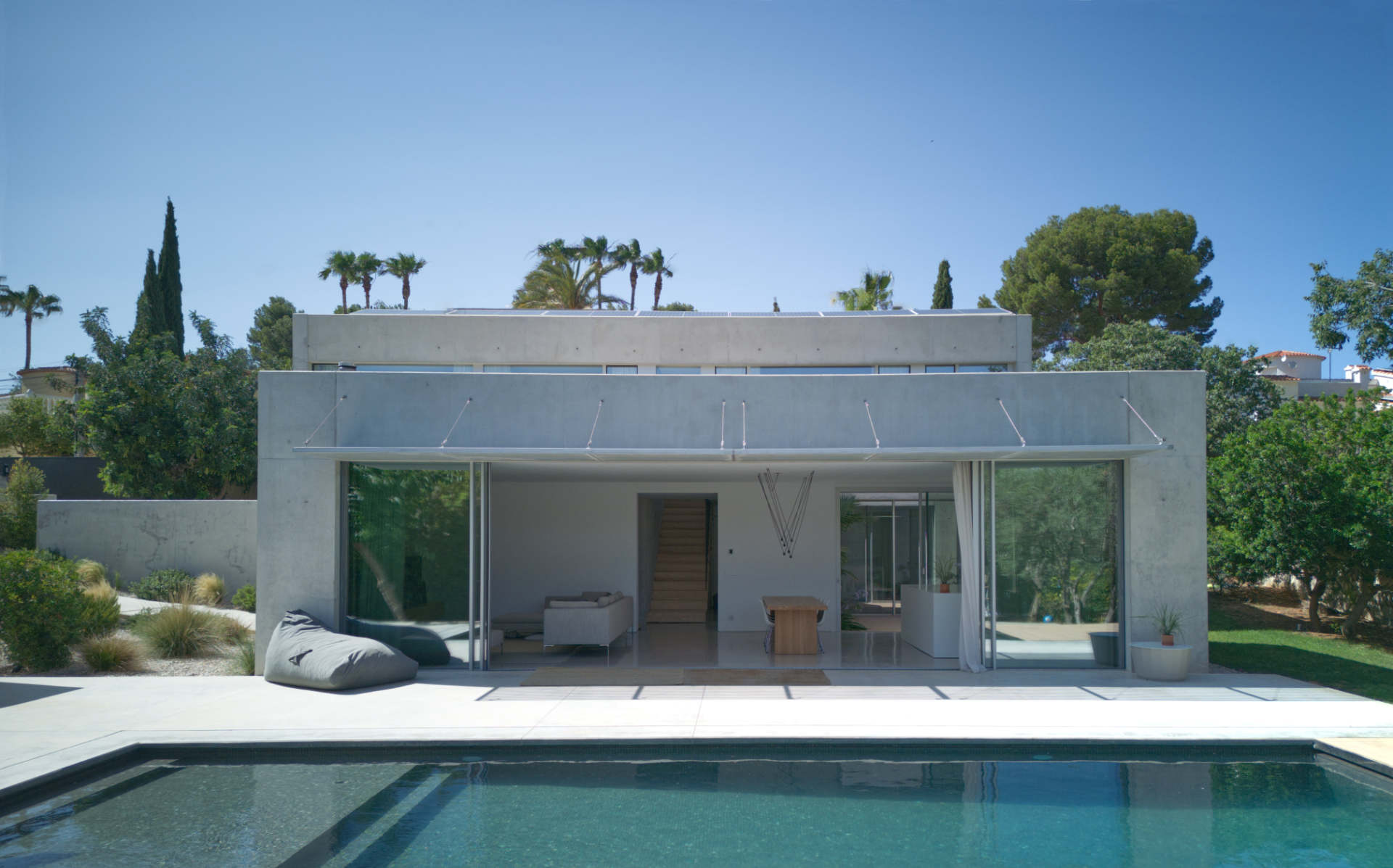 "Una vivienda en hormigón blanco con unas maravillosas vistas a Dénia que emerge como una escultura, con un gran voladizo y con el fuerte objetivo de no poner barandillas ni ningún elemento que interrumpiese esas vistas."