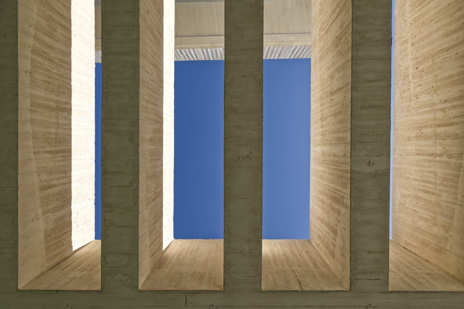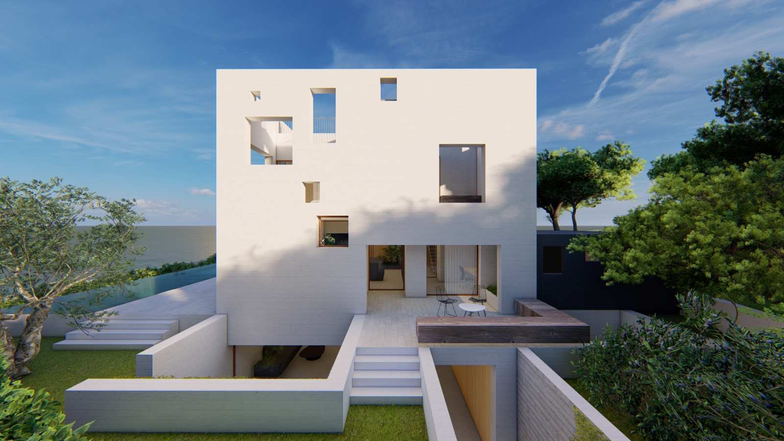 "Propuesta atrevida que consiste en un cubo de hormigón visto perforado a primera línea de mar, de modo que las vistas quedan enmarcadas a modo de cuadros pictóricos y decoran los espacios y los vacíos interiores."