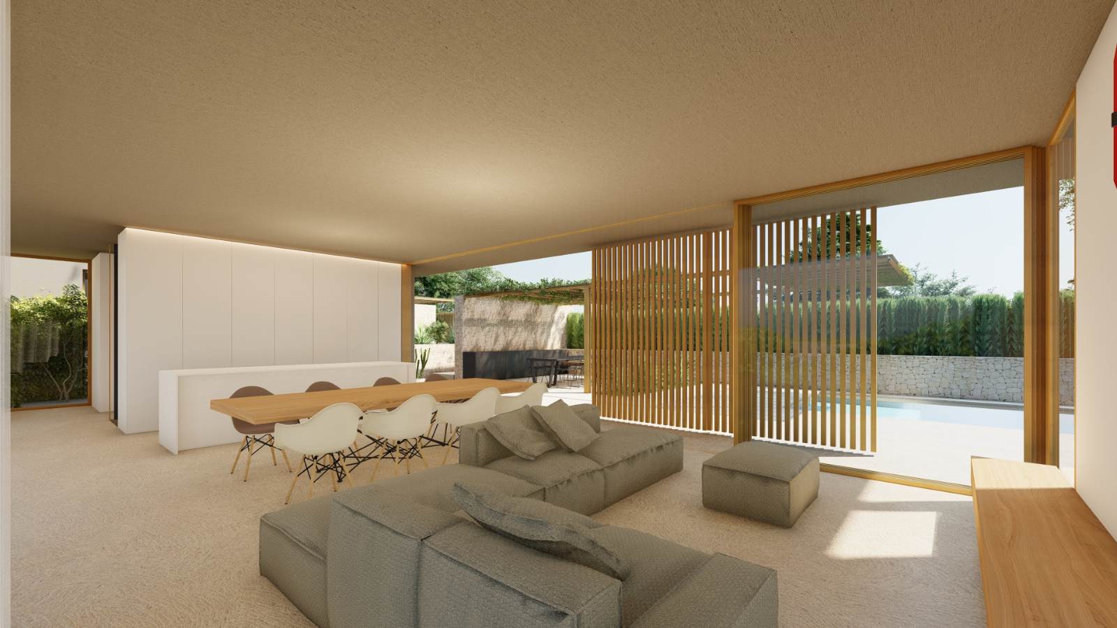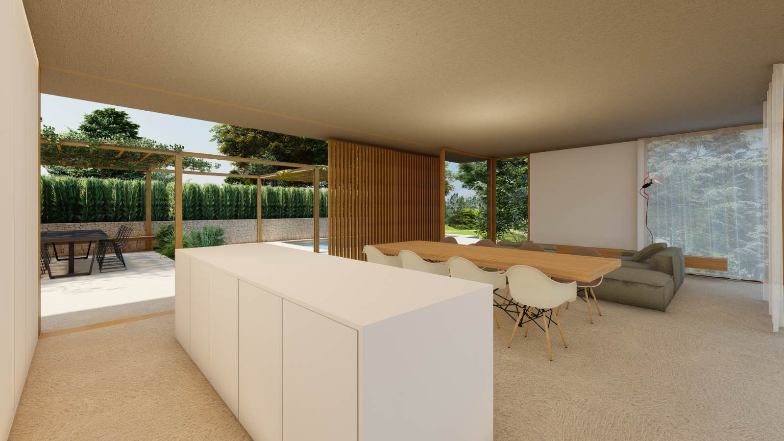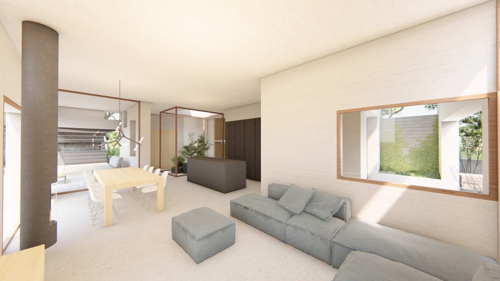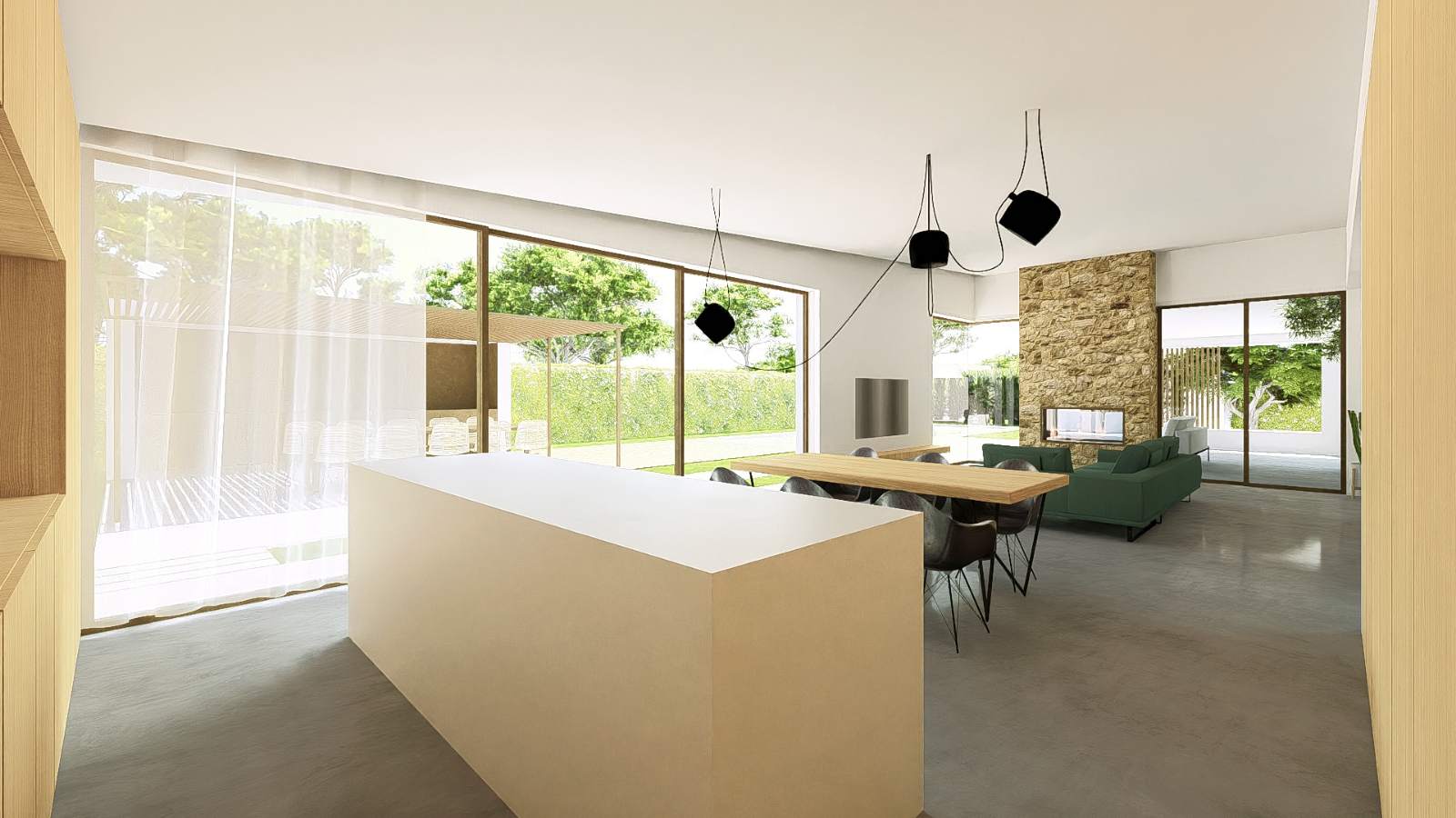 "Este proyecto reflexiona profundamente en torno al funcionamiento de una vivienda estándar y lo altera. La vivienda mira hacia si misma escondiendo la pinada y generando espacios muy especiales con una experiencia distinta a lo acostumbrado."