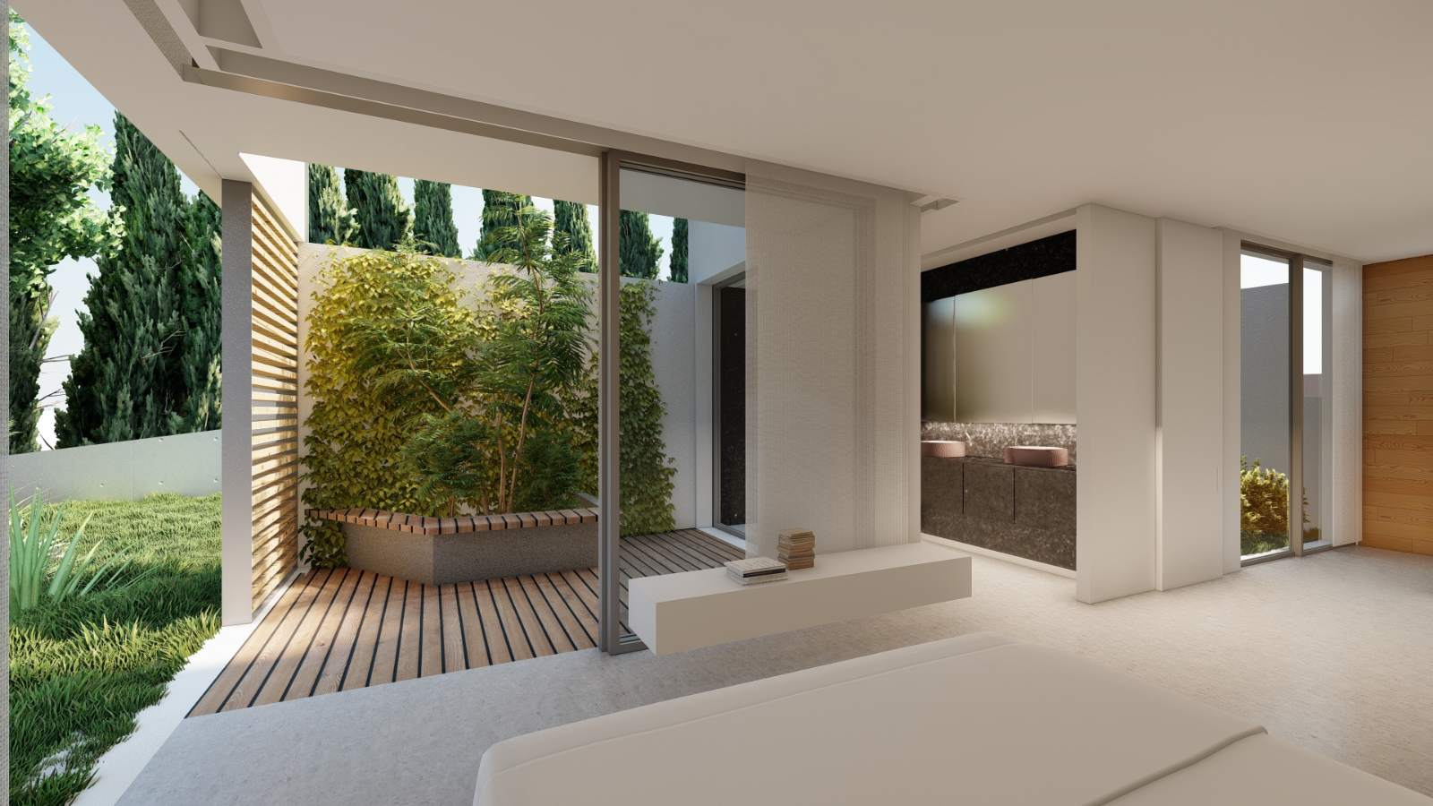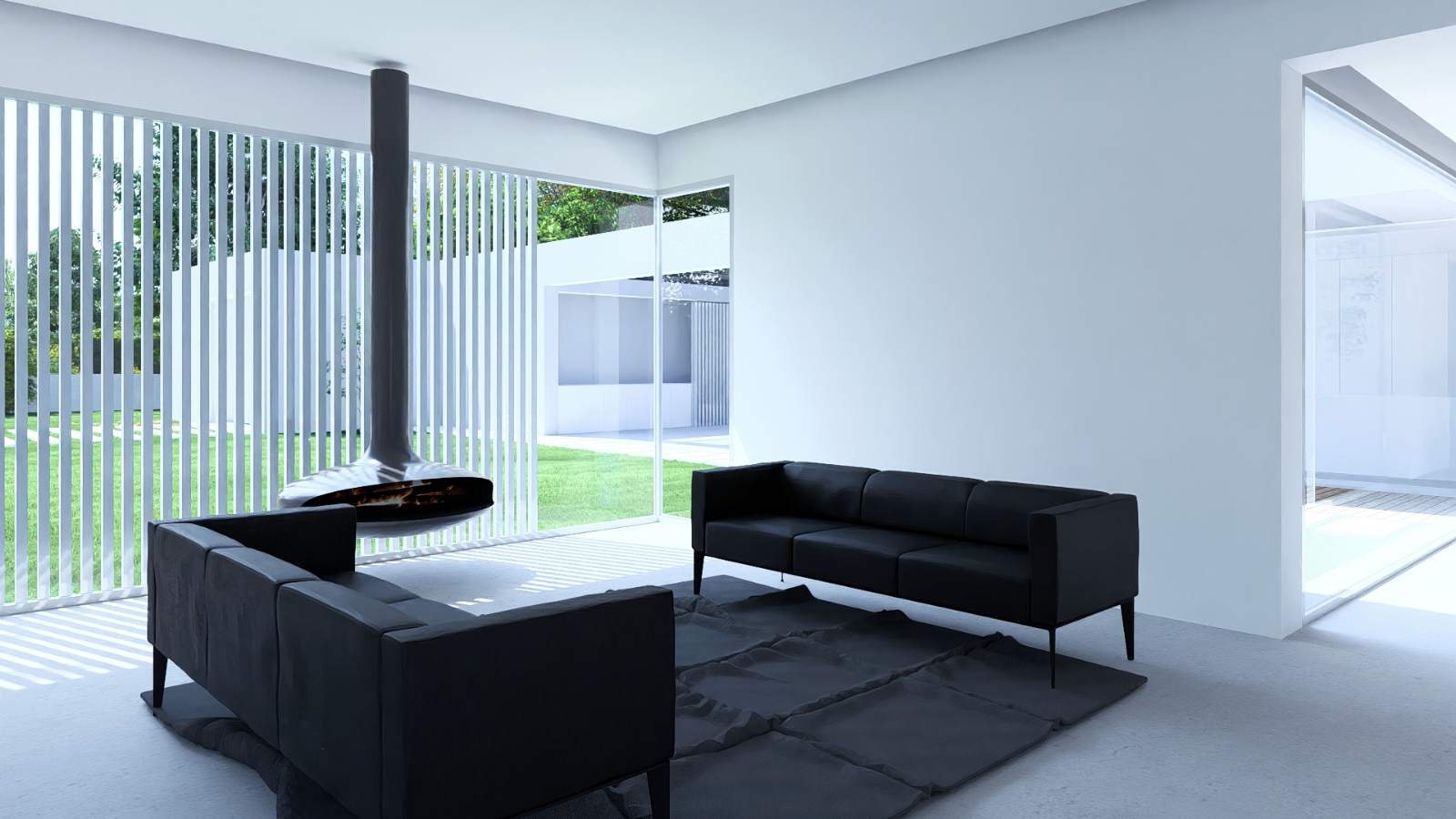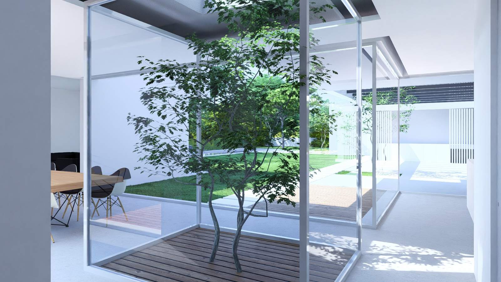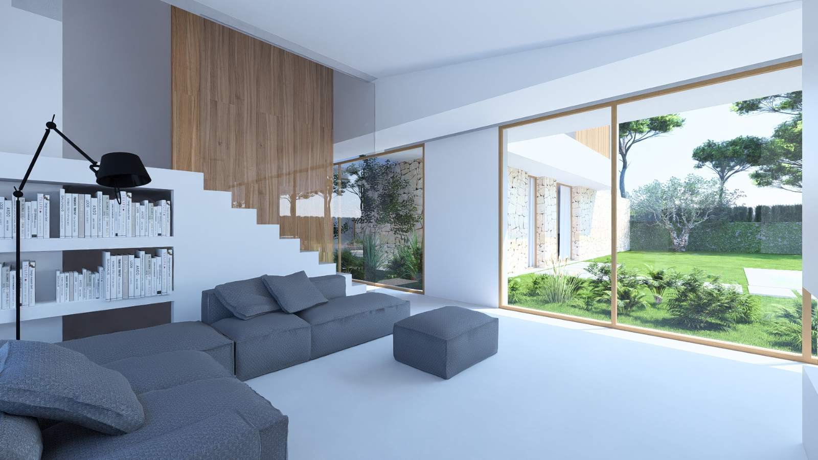 "Vivienda que mediante un alarde estructural busca romper la barrera con el exterior introduciendo el jardín hacia el interior mediante grandes aperturas y patios y la barrera vertical mediante dobles alturas y roturas en el forjado."