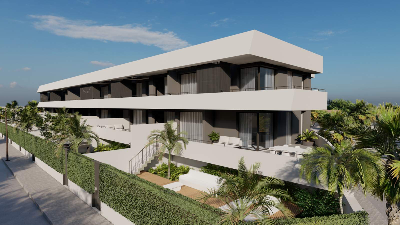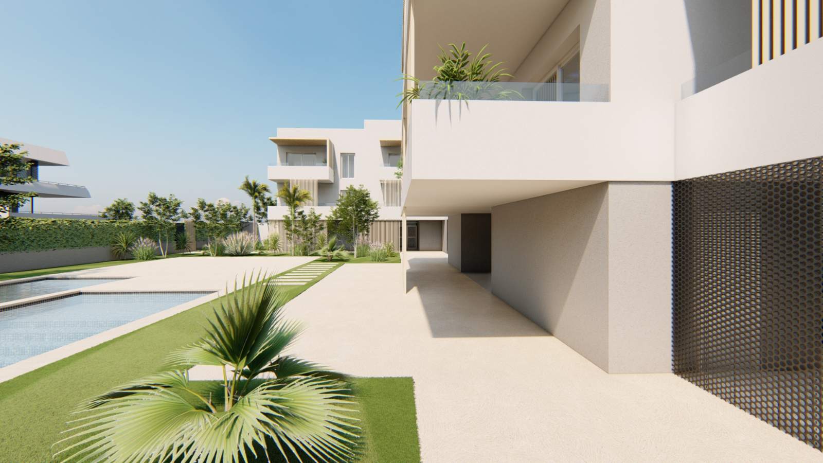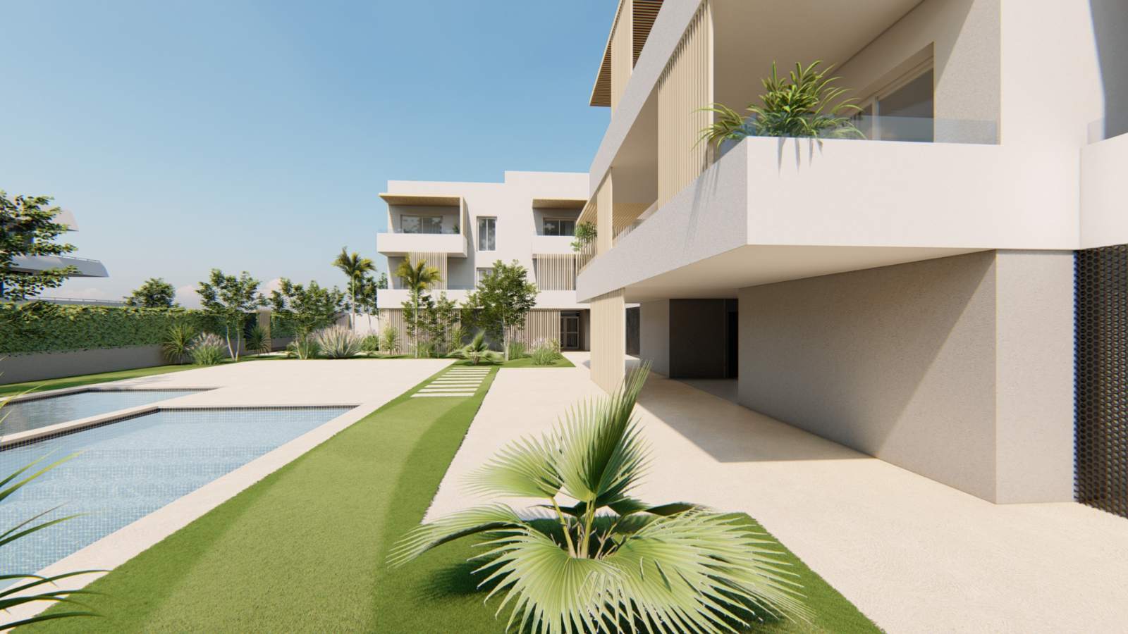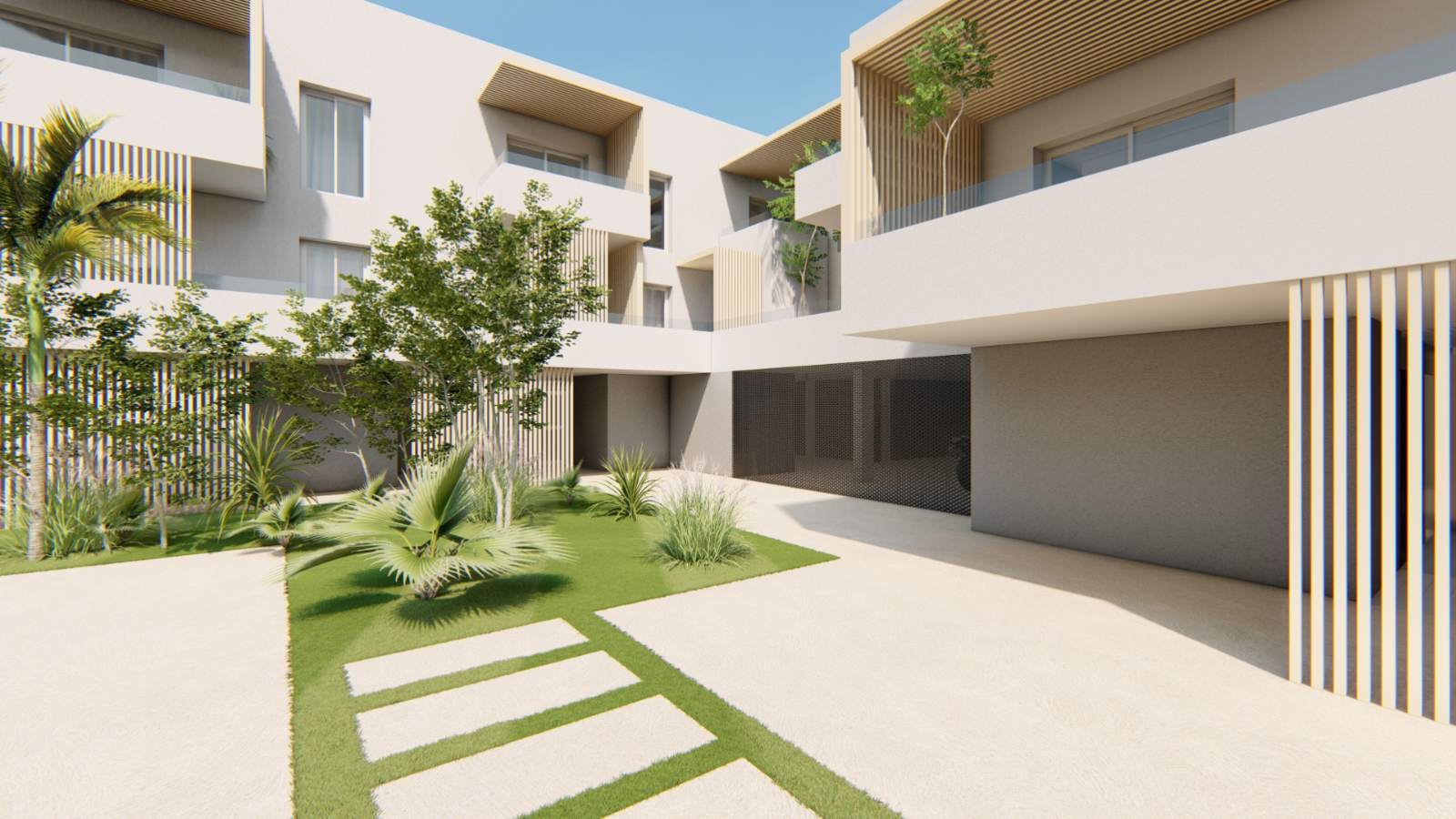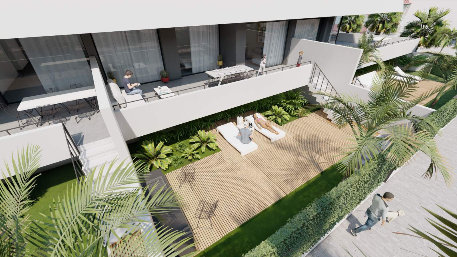 "Urbanización de 12 apartamentos cerca de la playa de Oliva con espacios exteriores de calidad."