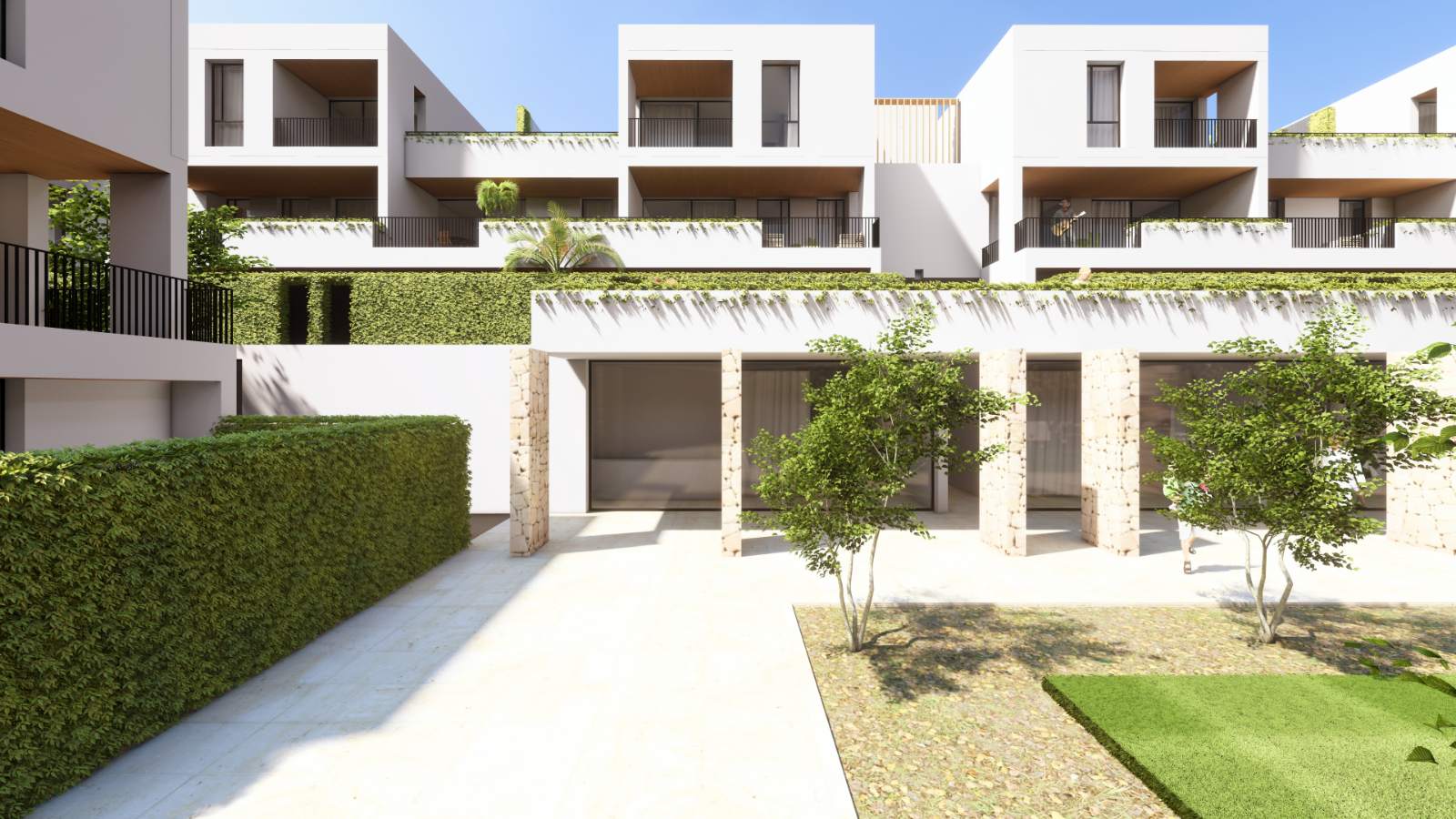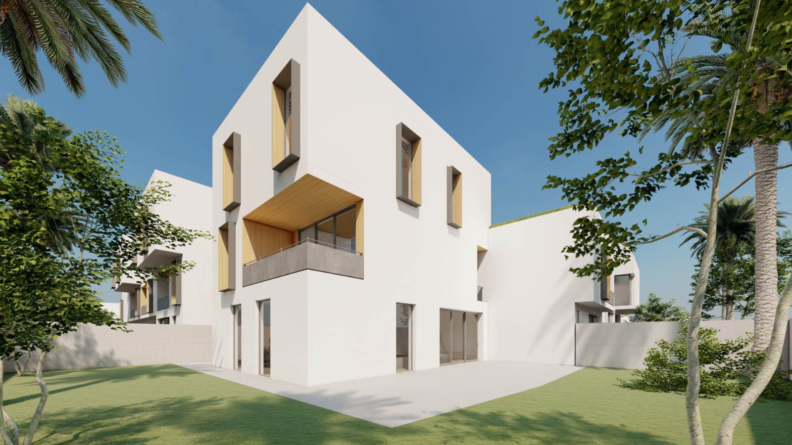 "Urbanización compuesta por 3 tipologías de viviendas independientes diseñadas para optimizar el espacio. Terrazas y patios exteriores y grandes voladizos ayudan a dar sensación de grandeza."