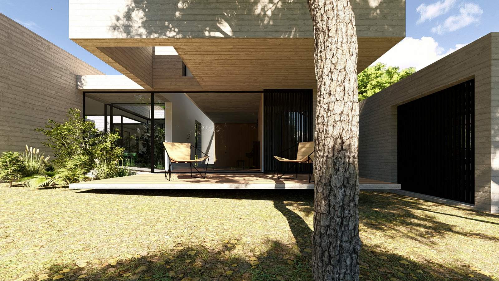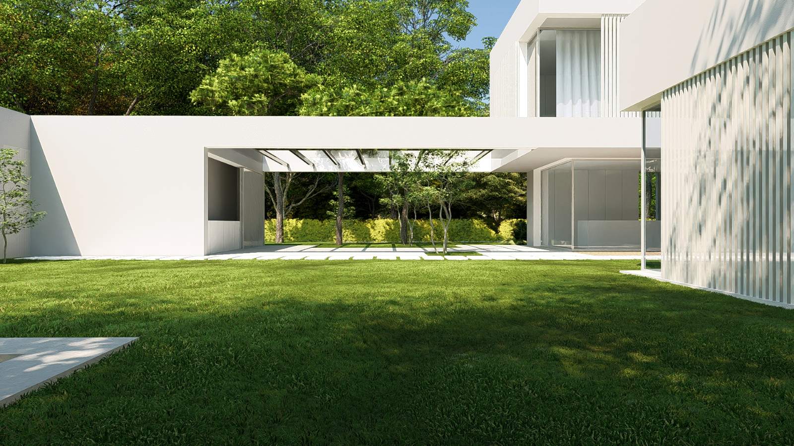 "Vivienda que explora la relación de la vivienda principal y su módulo para invitados a través de espacio exterior y zona verde."