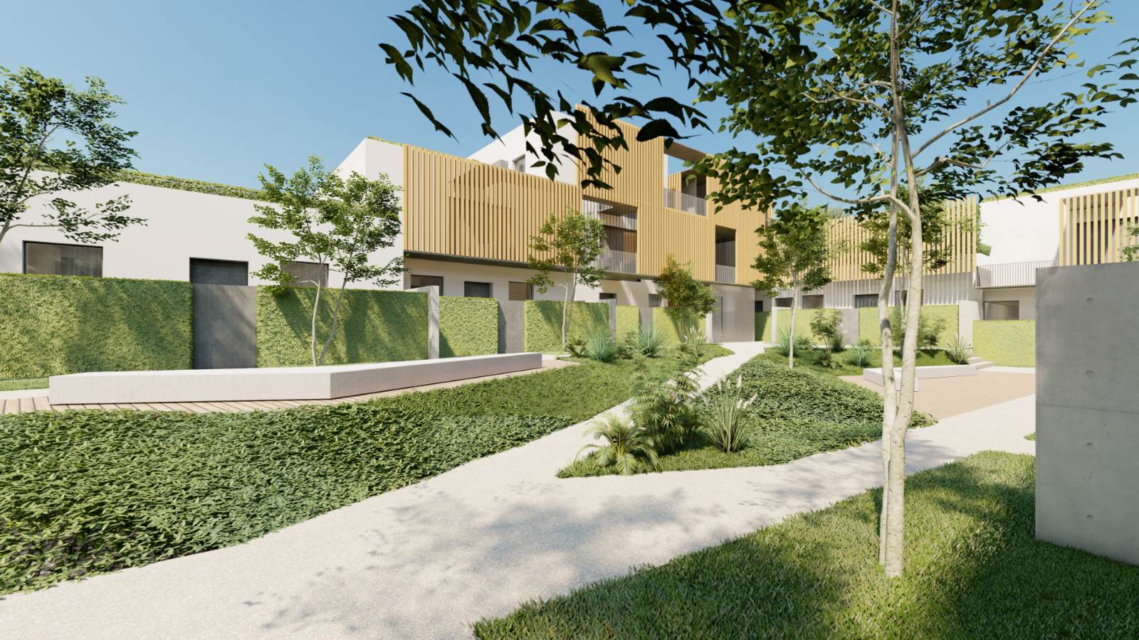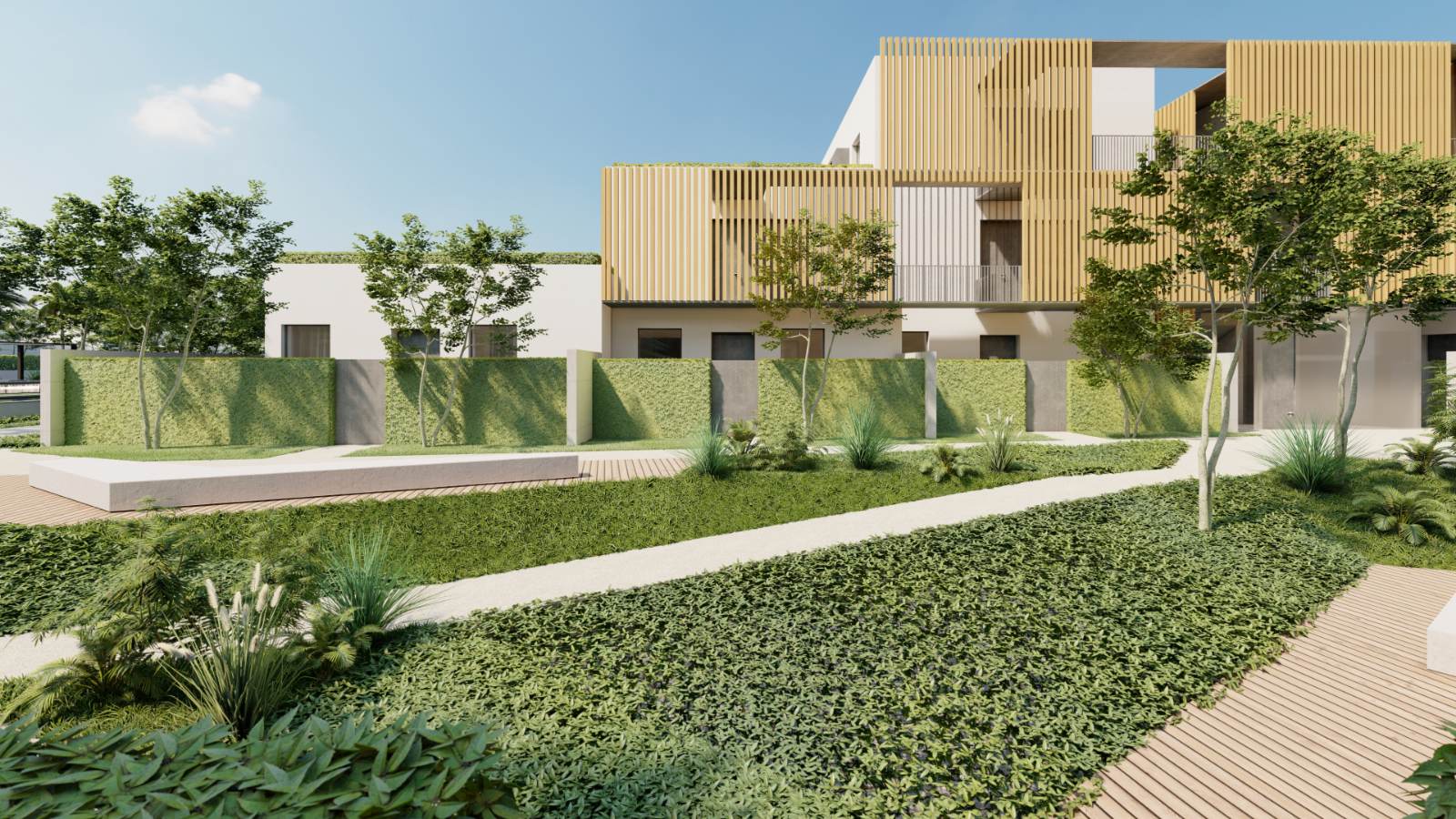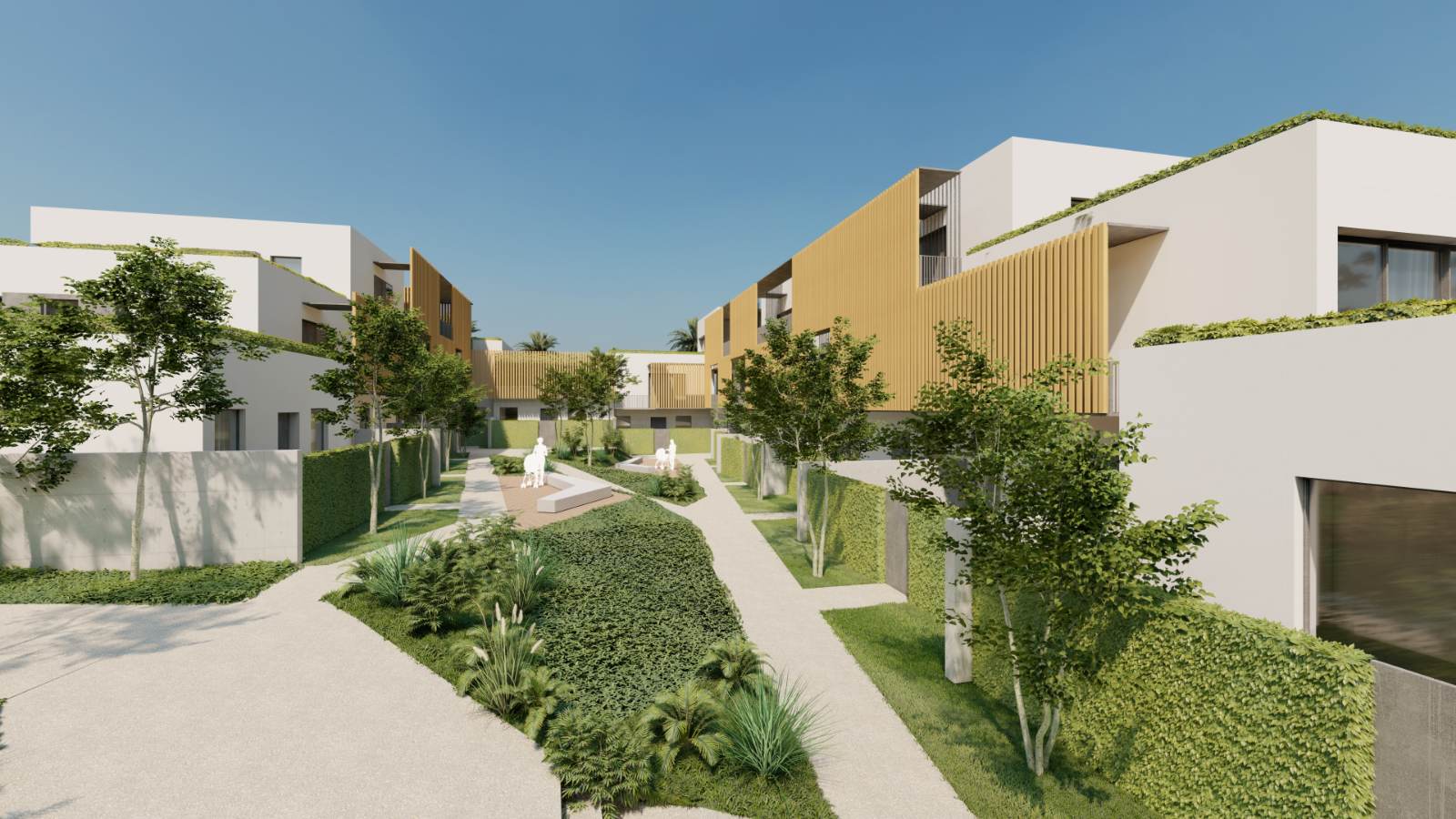 "Propuesta de 10 viviendas pareadas optimizadas de manera que puedan contar con terrazas y jardines de espacio necesario capaz de albergar una pequeña barbacoa y una piscina privadas."